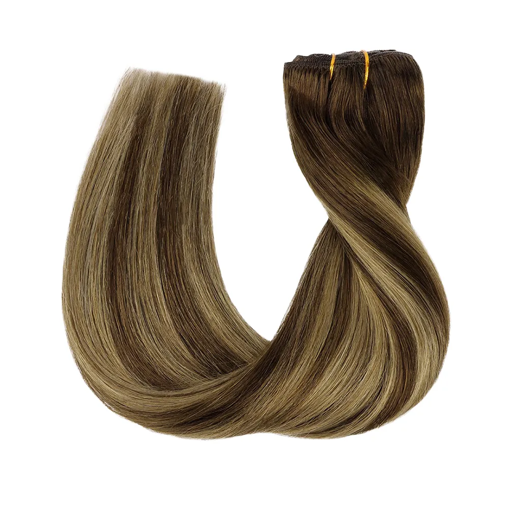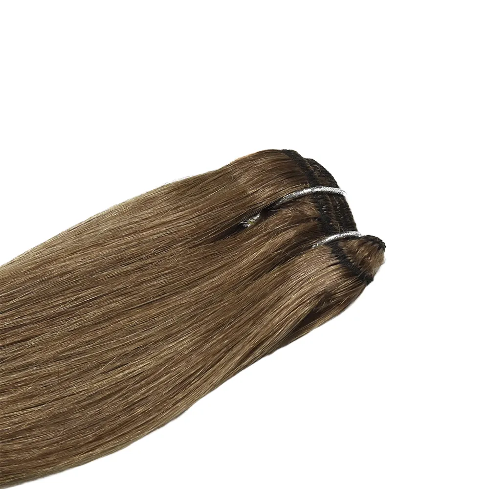 Classic 100% human hair machine weft with double-stitch durability, customizable 100g bundles in 14–24 inches, smooth and tangle-free for versatile, lasting styles.